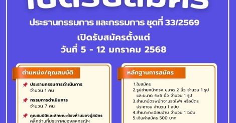 เปิดรับสมัคร ประธานกรรมการดำเนินการ และกรรมการดำเนินการ ชุดที่ 33/2569